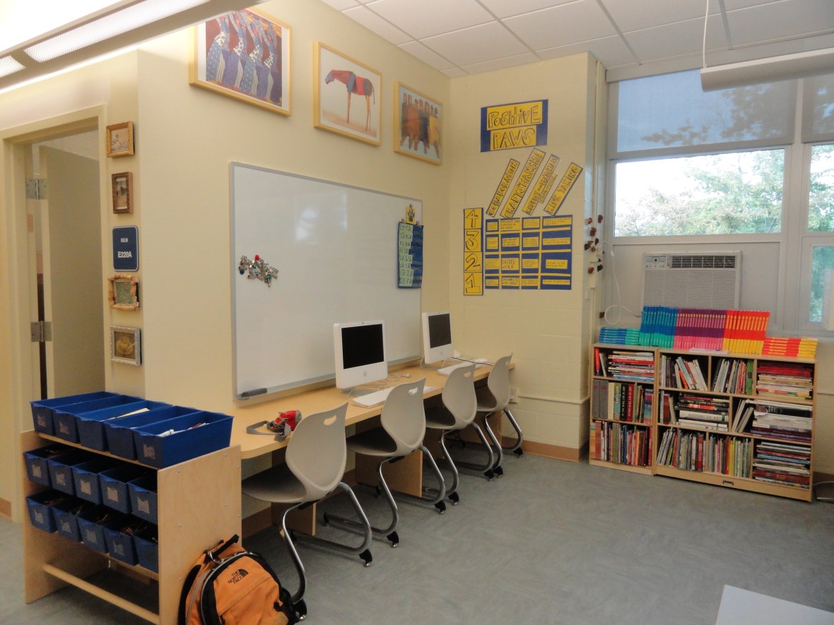 Our computer lab and extensive art library, arranged thoughtfully by one of our fabulous parent volunteers on School Beautification Day. Many thanks to all who attended to get Maury in tip top shape!