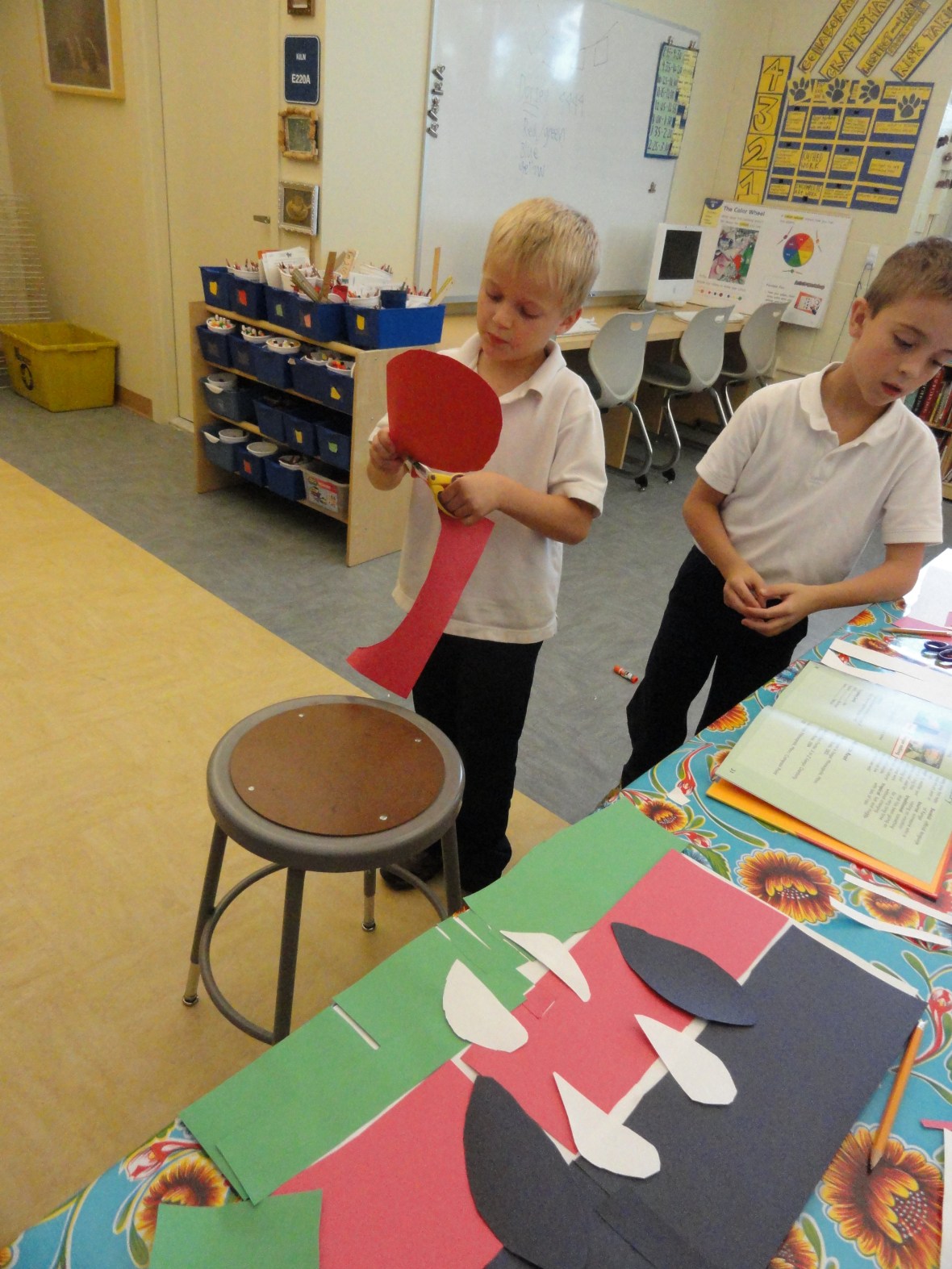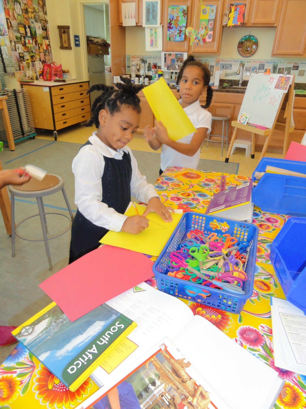 Our 3rd graders are so excited to come up to the studio during their open studio time. This week, they really chipped in and helped create flags from around the world to string across the entryway of the downstairs lobby for Diversity Night. Thanks to Ms. Sweeney for having such a wide-array of multicultural books for us to learn from.