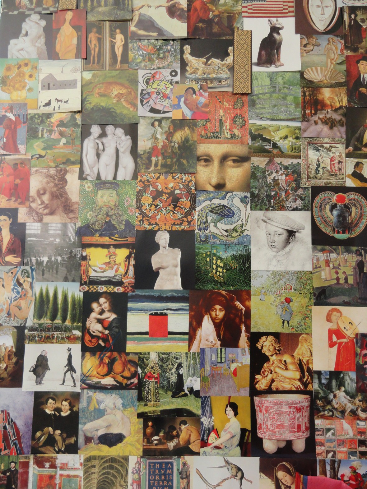 A thoughtful parent dropped off an old desk calendar full of 365 stunning works of art throughout history. She thought I may be able to do something with them. She probably intended that I apply them to student work, but I was so fond of the glossy images that I spent most of parent-teacher conference day listening to music, cutting, taping, and assembling my wall collage for me. I am glad to know the students are equally as intrigued by the diversity, color, and complexity of art throughout the ages. Most of our rectangle discussions this week have revolved around the pieces that jump out to us and why they are our favorites. A fair number of discussions have also been about naked vs. nude and the frequency of nudity in art. Luckily, the National Gallery was there to back me up as our fourth and fifth graders navigated through numerous nude sculptures during Art Around the Corner. Topics such as nudity in art, race, diversity, and religion can often be radical, controversial, and polarizing, especially when discussed at school–most of the time such discussions are fascinating, eye-opening, and a learning experience for all.