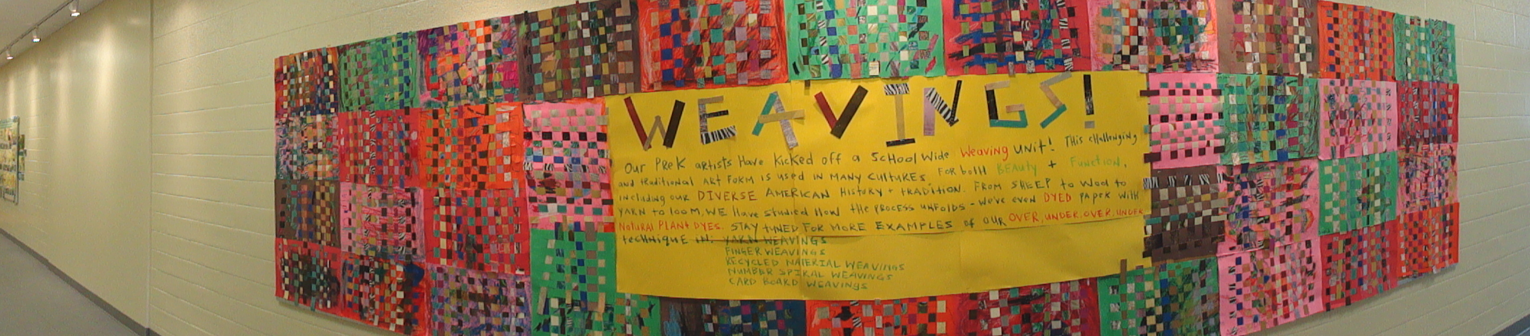 The pre-kindergarten weavings are on display downstairs in the East building in case you haven’t stopped by to check out our most recent work