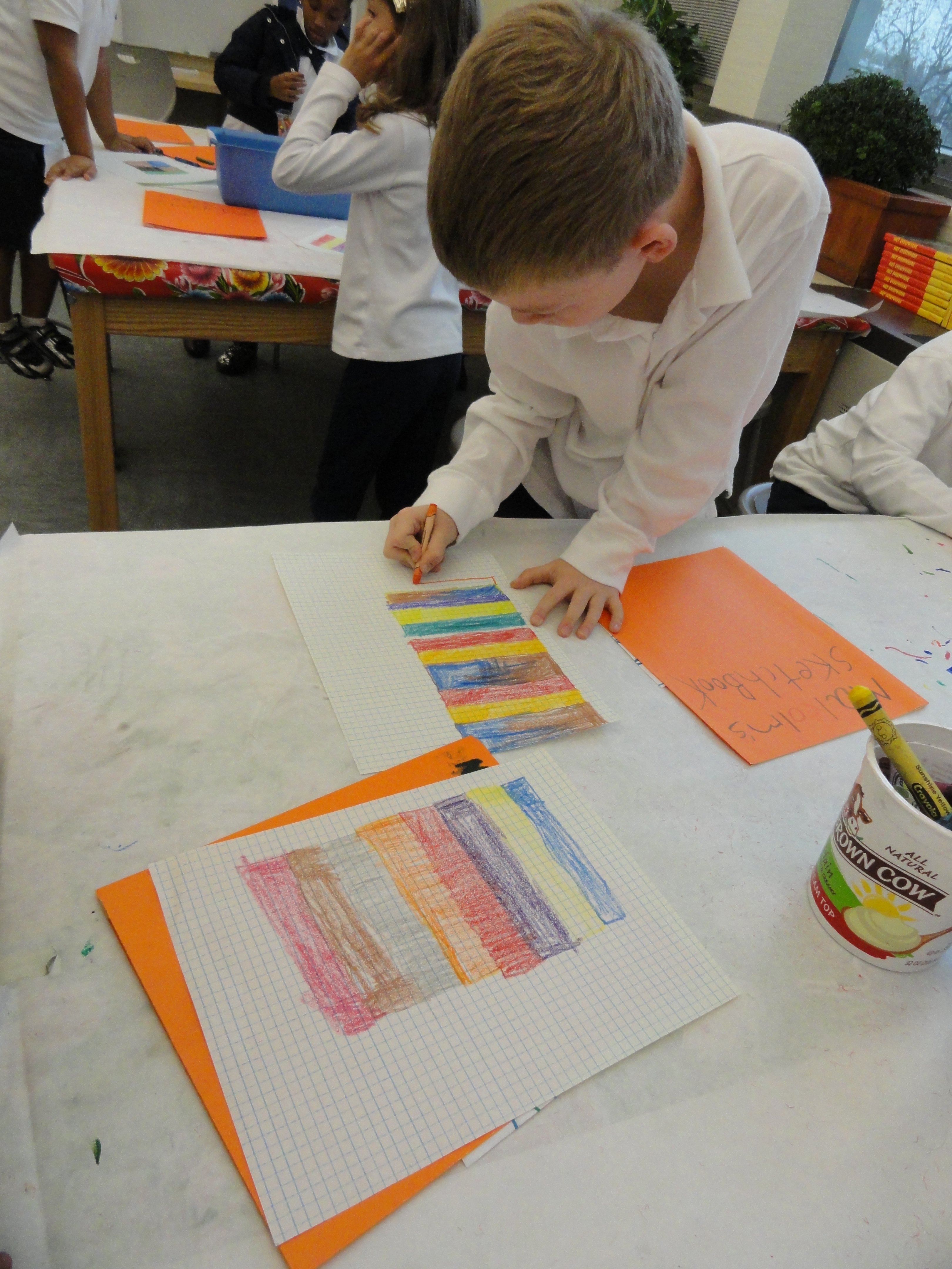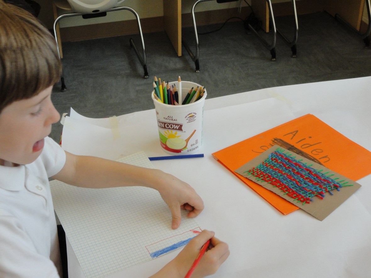 The pre-weave: Students graphed out how they wanted their weavings to look using graph paper. They designated how large each color block would be by using the small squares on the paper to scale their work.