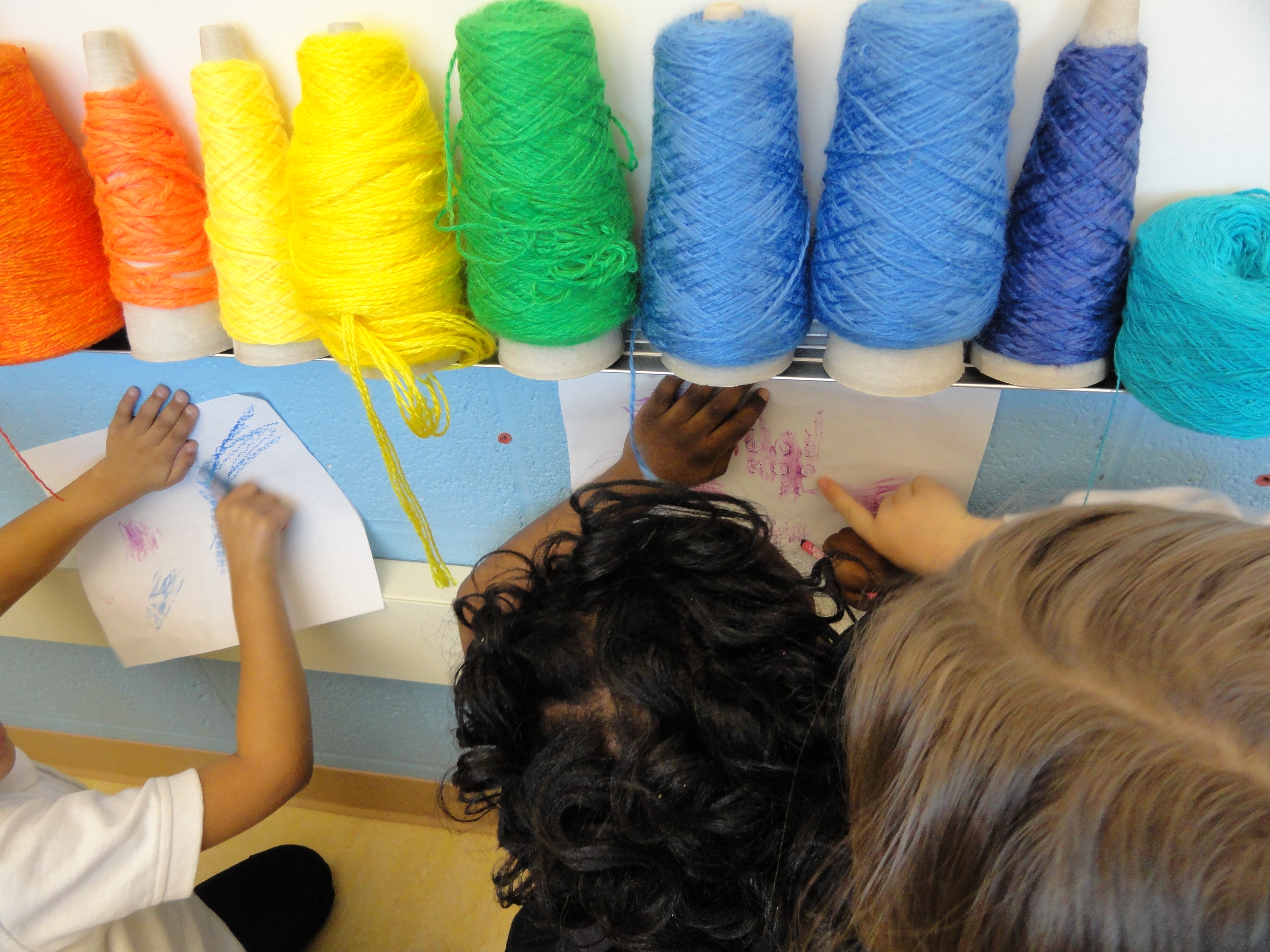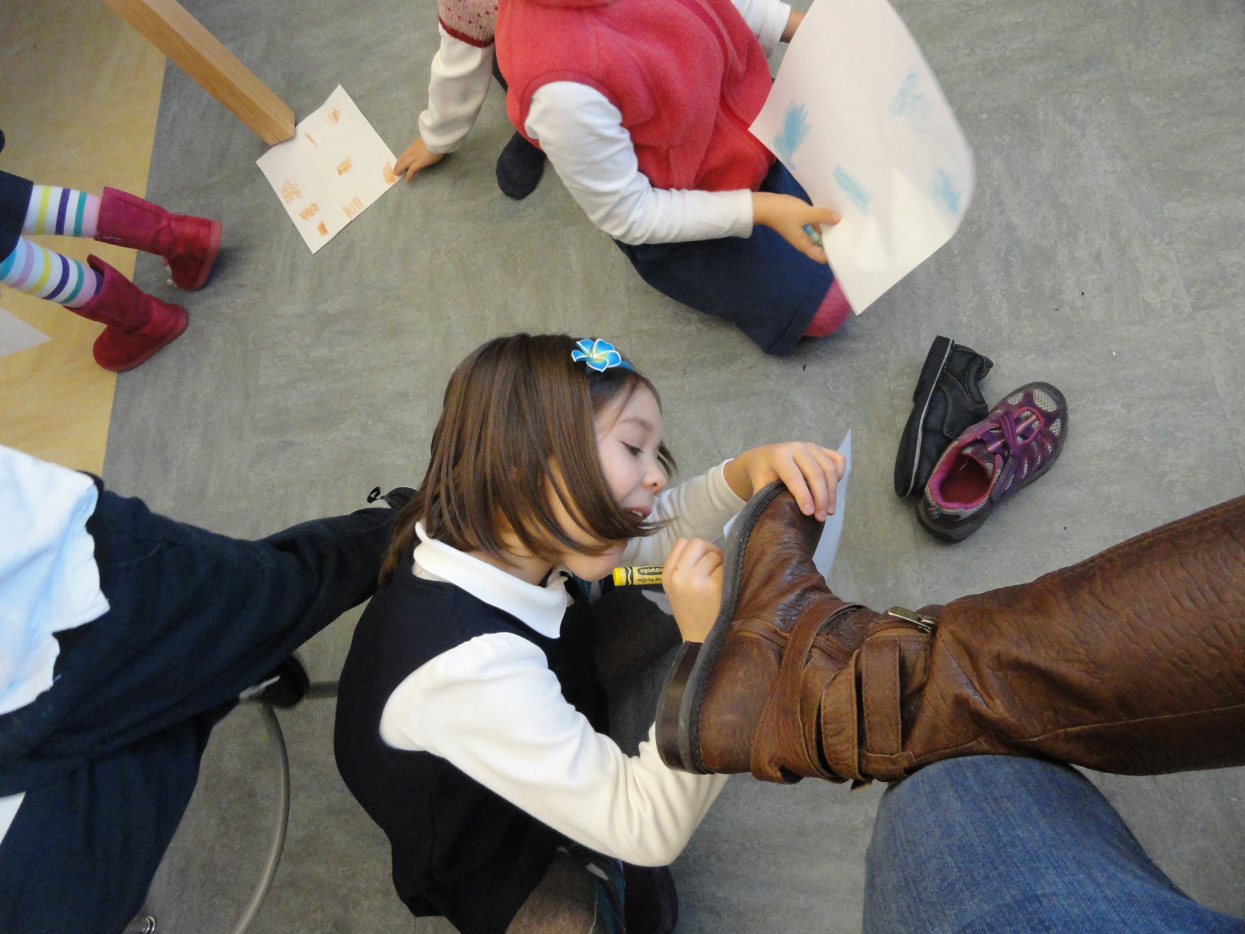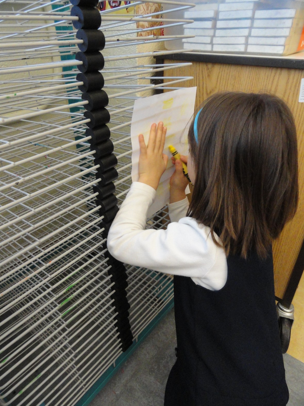 In kindergarten, we’re studying the art element: TEXTURE as part of a larger unit on PRINTMAKING and SEASONAL CHANGE. Last week, Mrs. Battle’s class went on a texture hunt, not to be confused with a treasure hunt. We scoured the studio for creative textures and did crayon rubbings to document our findings. This quickly turned into a sock hoppin’ good time! There was so much laughter and excitement that I can’t wait til Friday when I can do it all over again with Mrs. Vick’s class!