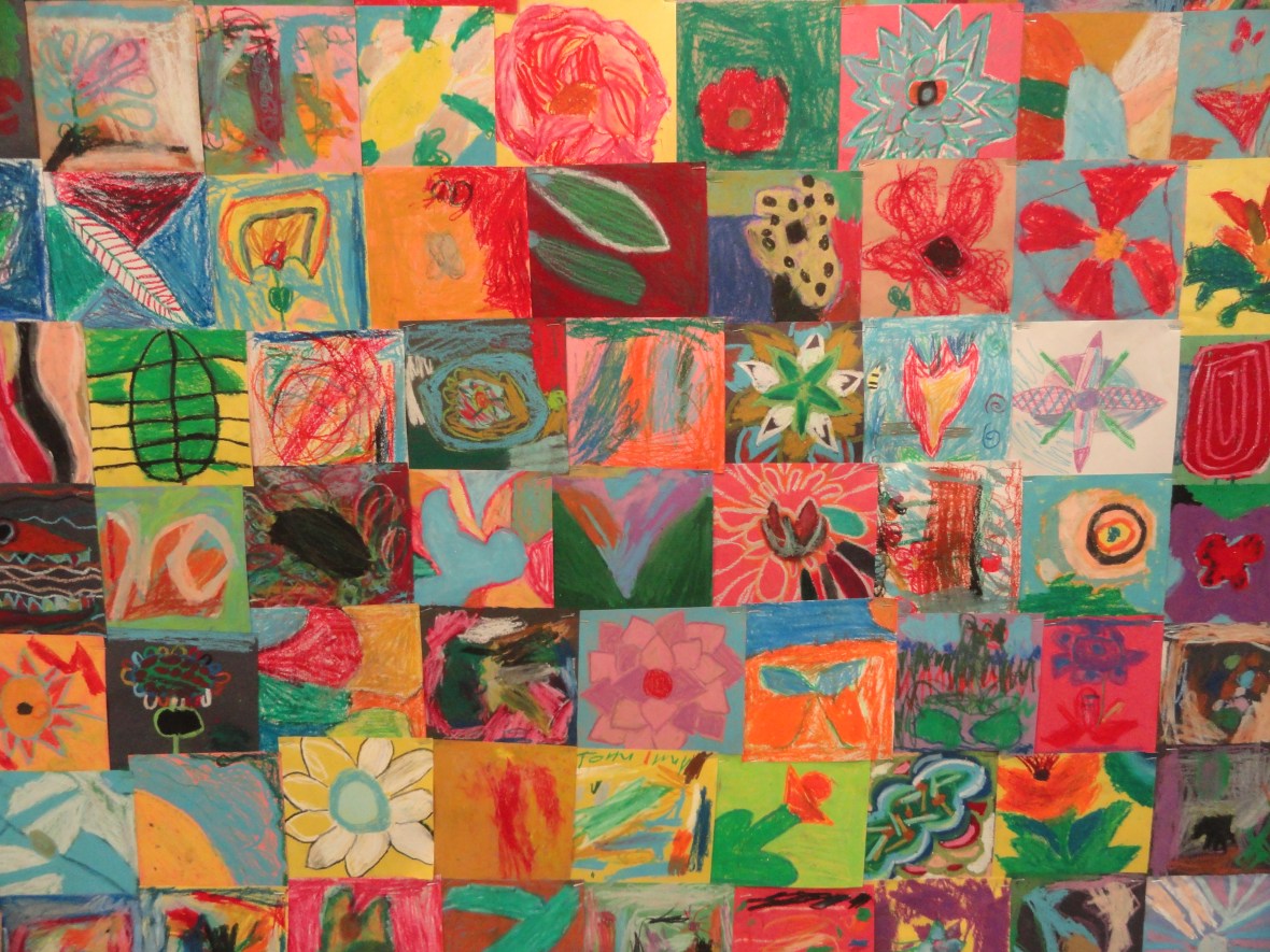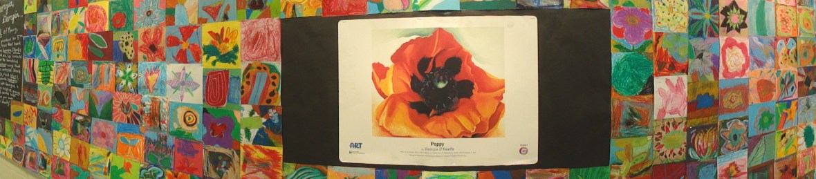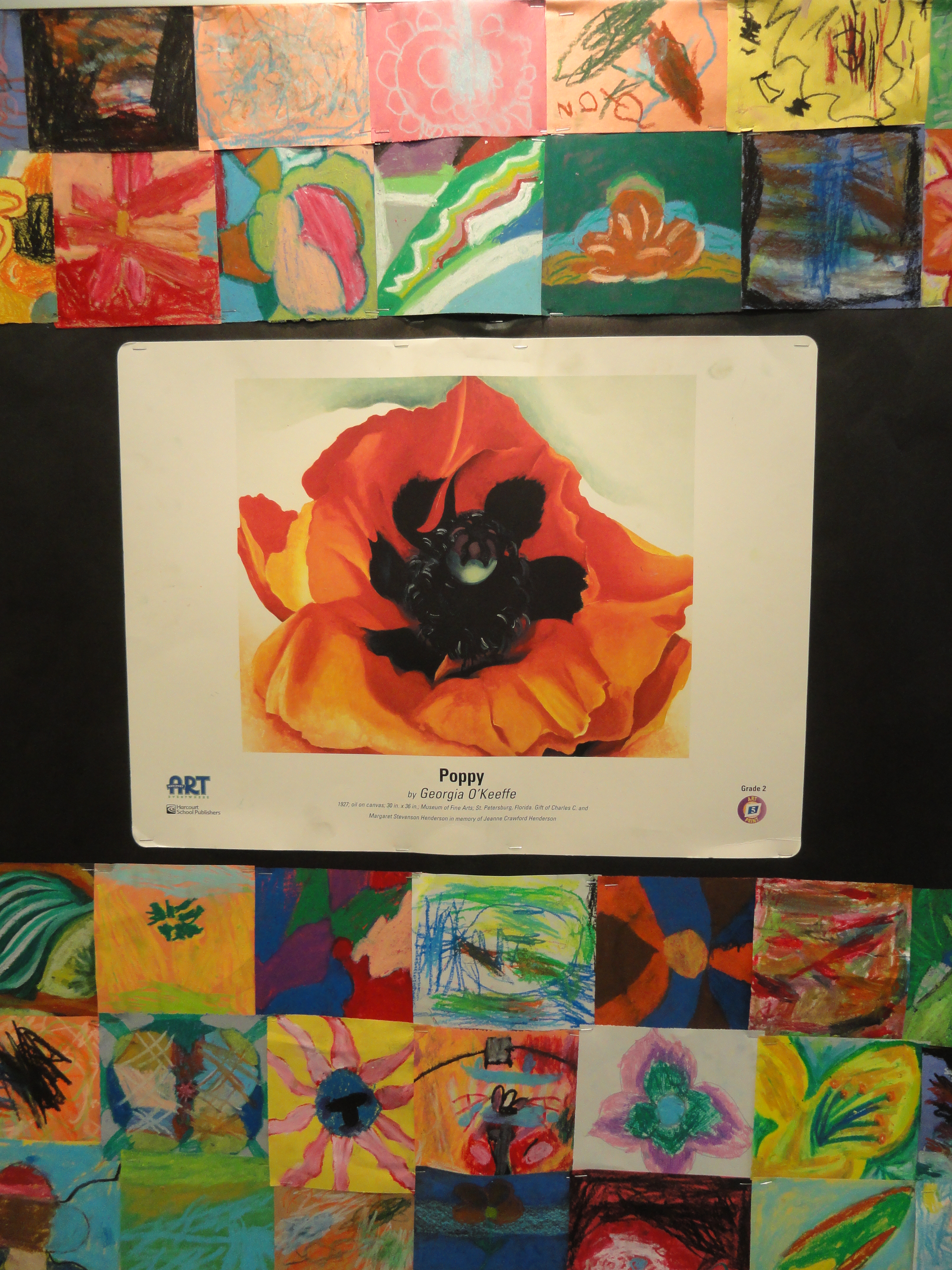 All of Maury, from preschool to 5th grade, tried our hand at some Georgia O’Keeffe inspired art. We looked deeply at the beautiful and abstract ways that nature unfolds in Georgia’s work. Weird details, vivid colors, and smooth textures ruled both Georgia and Maury’s creative process. Take a look at the collaborative patchwork of organic flowers that students came up with. Every time I walk by, I find a new favorite and notice something I didn’t quite see the time before.