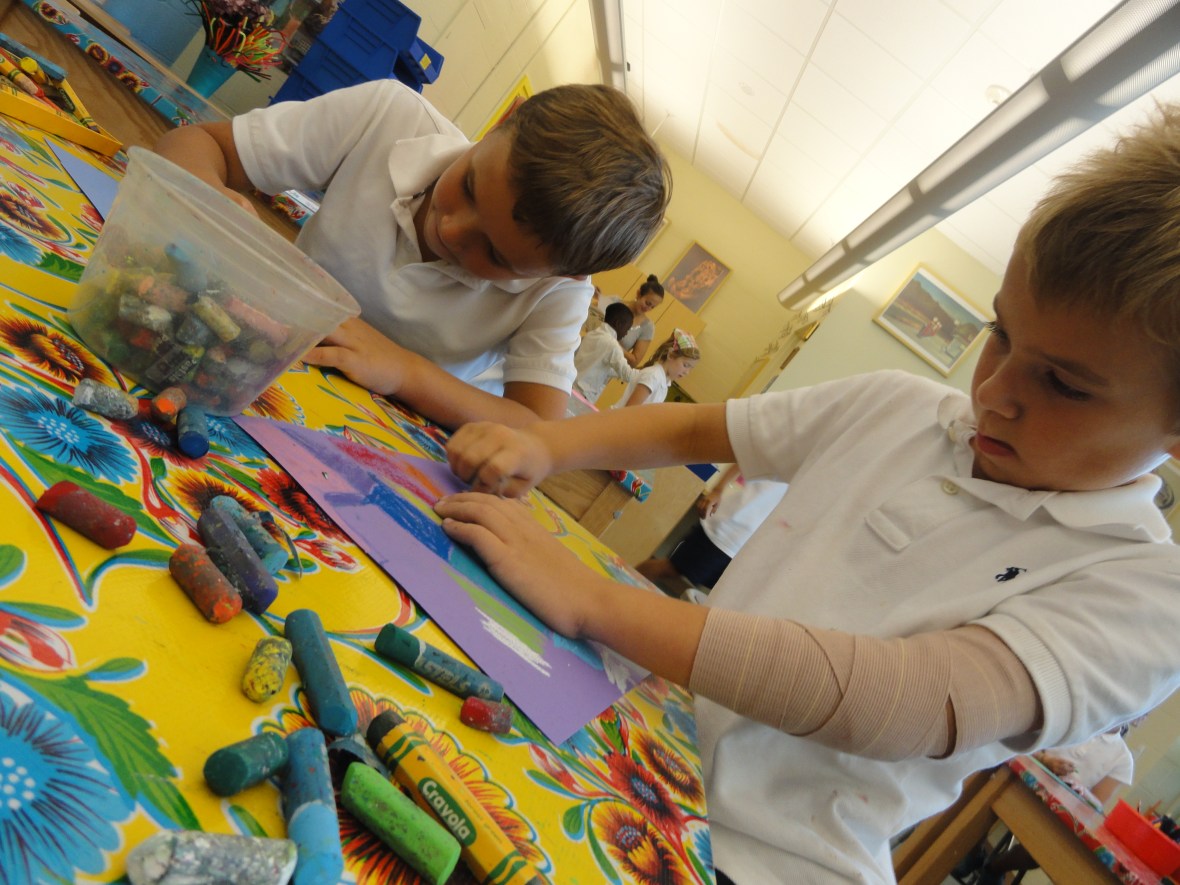 The members of the 4th grade green table each had their own unique styles when using pastels