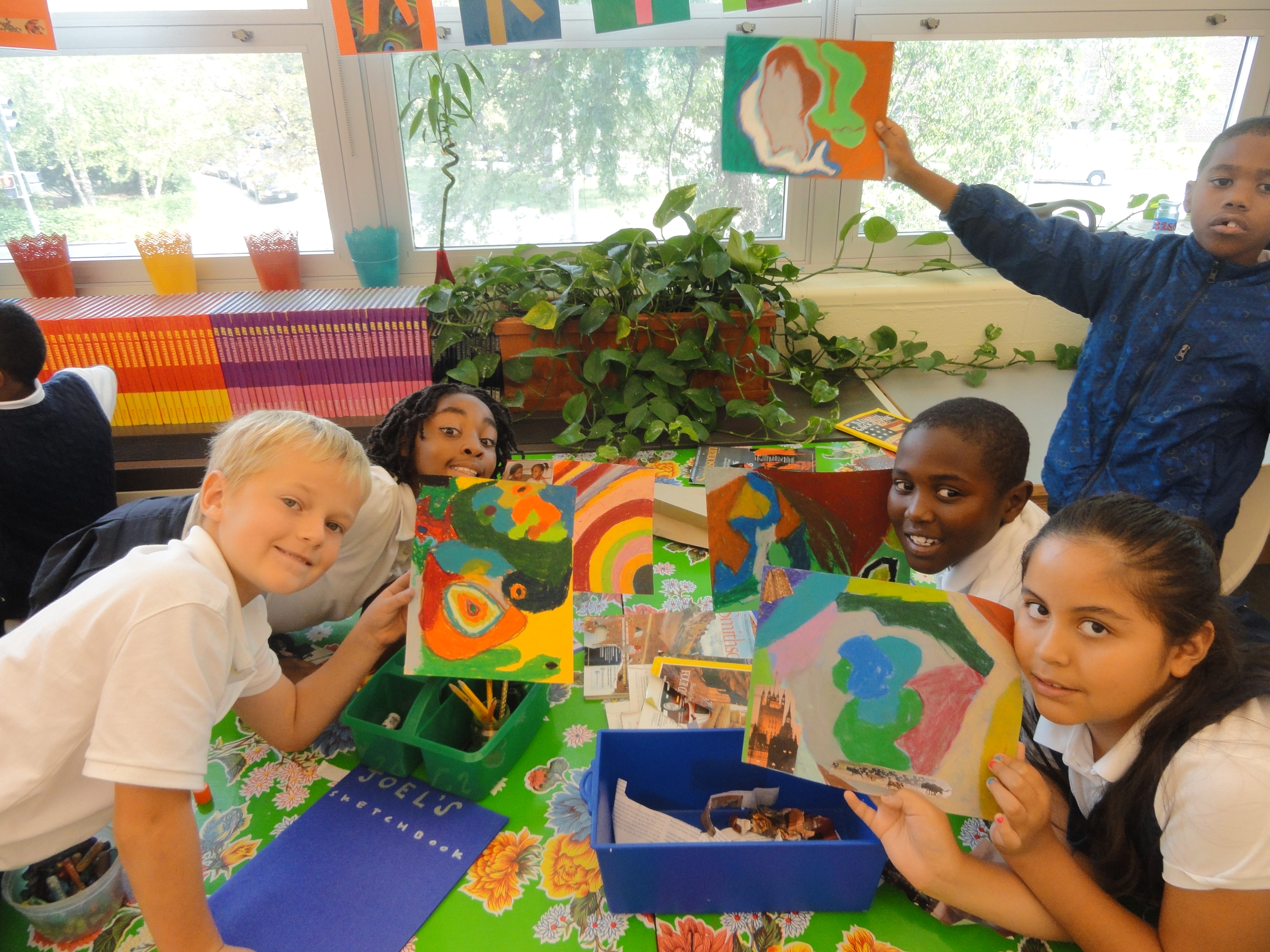All classes have spent the past few weeks easing back into the routines of the studio. The Elements of Art have sharpened our vocabulary and elevated the level of our classroom critiques. Each grade level was responsible for representing one of the seven Art Elements in an abstract collage. Not only did grade levels specialize in one area, they were re-acquainted with proper gluing, cutting, collage and oil pastel techniques. The works of art created during this unit will be submitted for the Maury Note Card competition. We have retired the theme, “Sharing in Washington,” this year and renamed it, “The Language of Art.” I am happy that all students will be able to submit a work of art this year, should they so desire. The media from which we worked this year is more expressive and abstract. Winners will not be chosen based on their drawing skill levels but on their artistic flair. I hope that this year’s note cards liven up your letter writing and serve to educate the recipients of your snail mail!