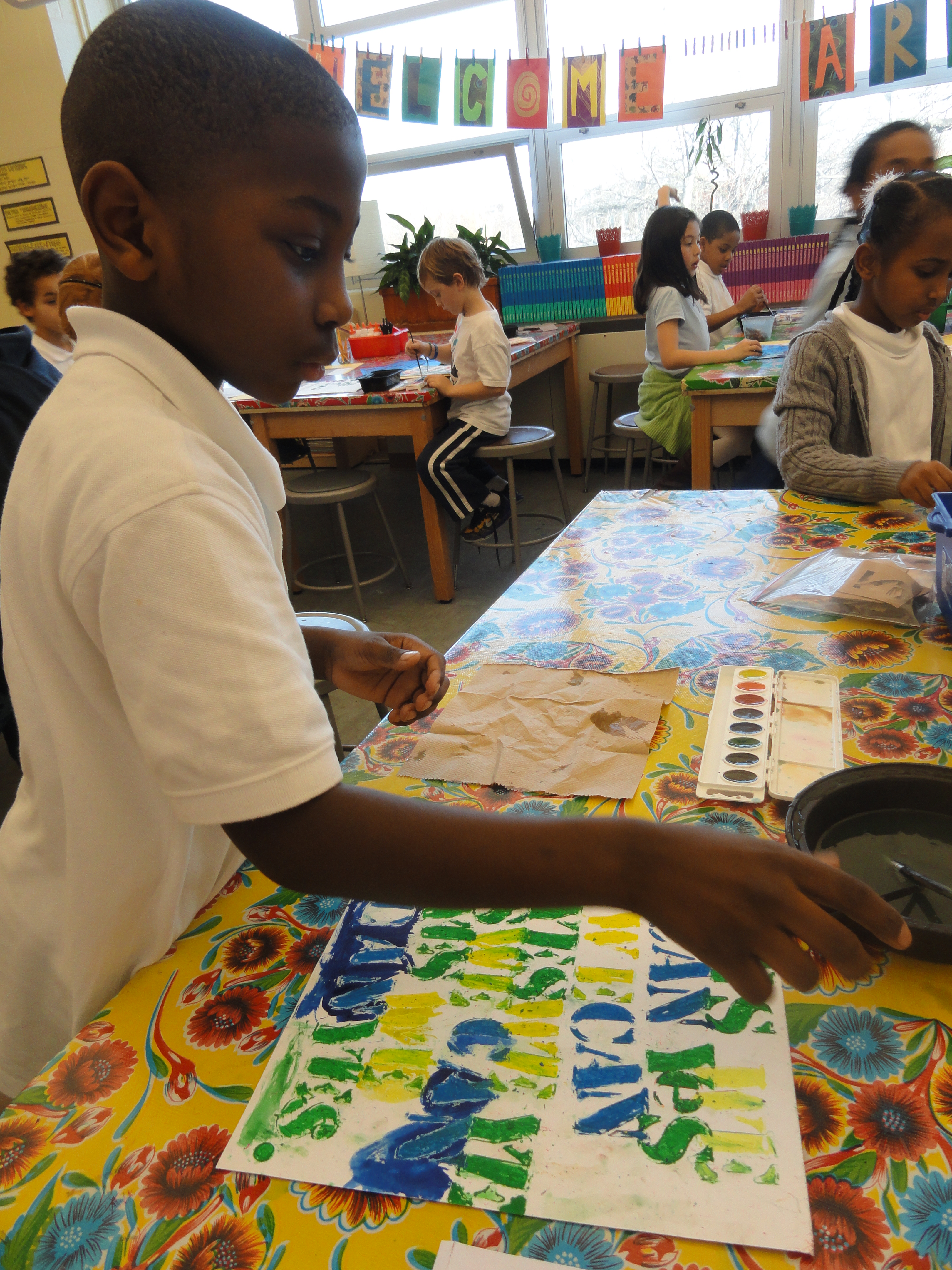 The 3rd graders worked hard to begin understanding the more complex goals of conceptual art. We wanted to see if we could work in the same style as Glenn Ligon so we found famous quotes by African Americans and set to work on stenciling the text. The goal was to use color, size, or design to take the already powerful words of the quote and make them even more impacting through our unique compositions.