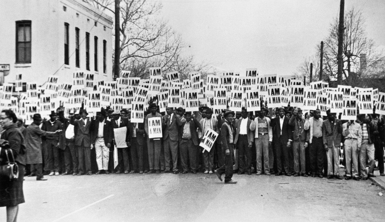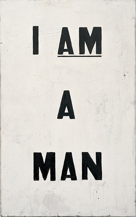 This is a photo of black sanitation workers who went on strike in Memphis, Tennessee in 1968. Dangerous conditions, mistreatment, and discrimination led to this ongoing protest that Martin Luther King Jr. spoke about in his “I’ve been to the Mountaintop” speech. Glenn Ligon was inspired by the simple yet powerful signs and reinvented them in his own piece, Untiled (I Am a Man), in 1988.