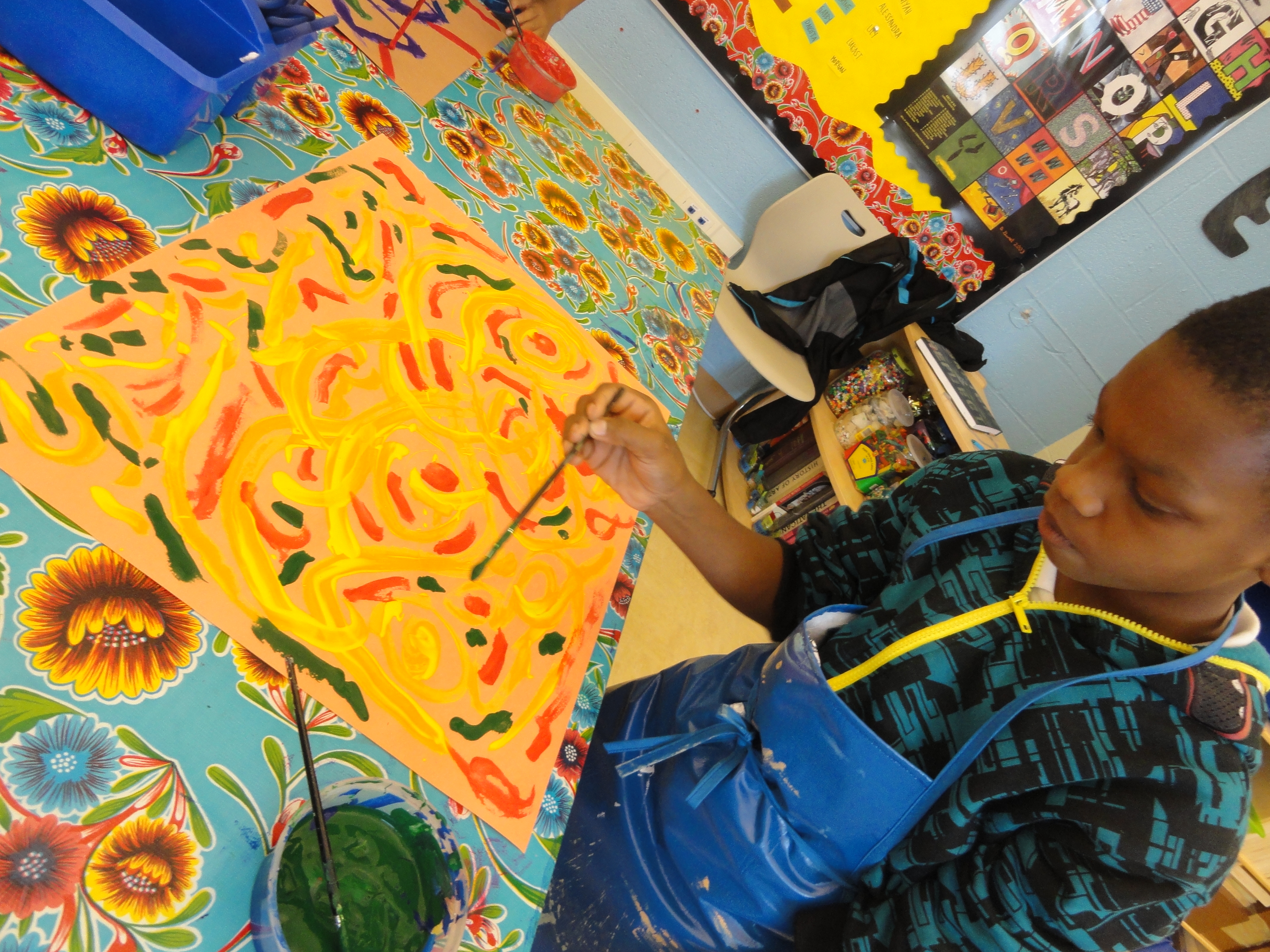 When the signal was given, students were then asked to travel with their paint palettes to a new canvas and begin adding their mark on the canvas of a former classmate’s. At first, students were nervous. “What if I don’t like the way my classmate changes my work?” asked students. “What if they don’t follow my vision?” Well, what if?