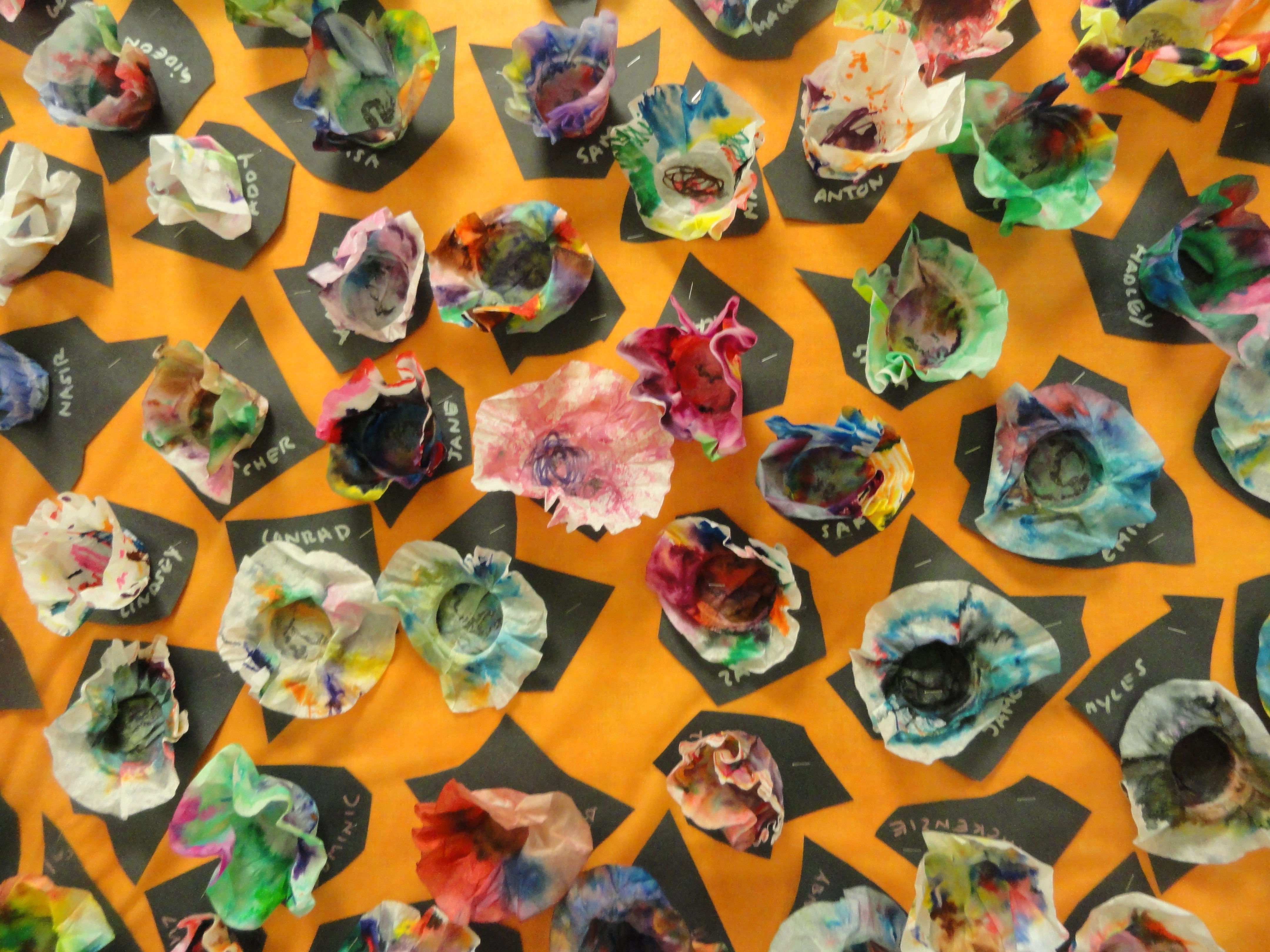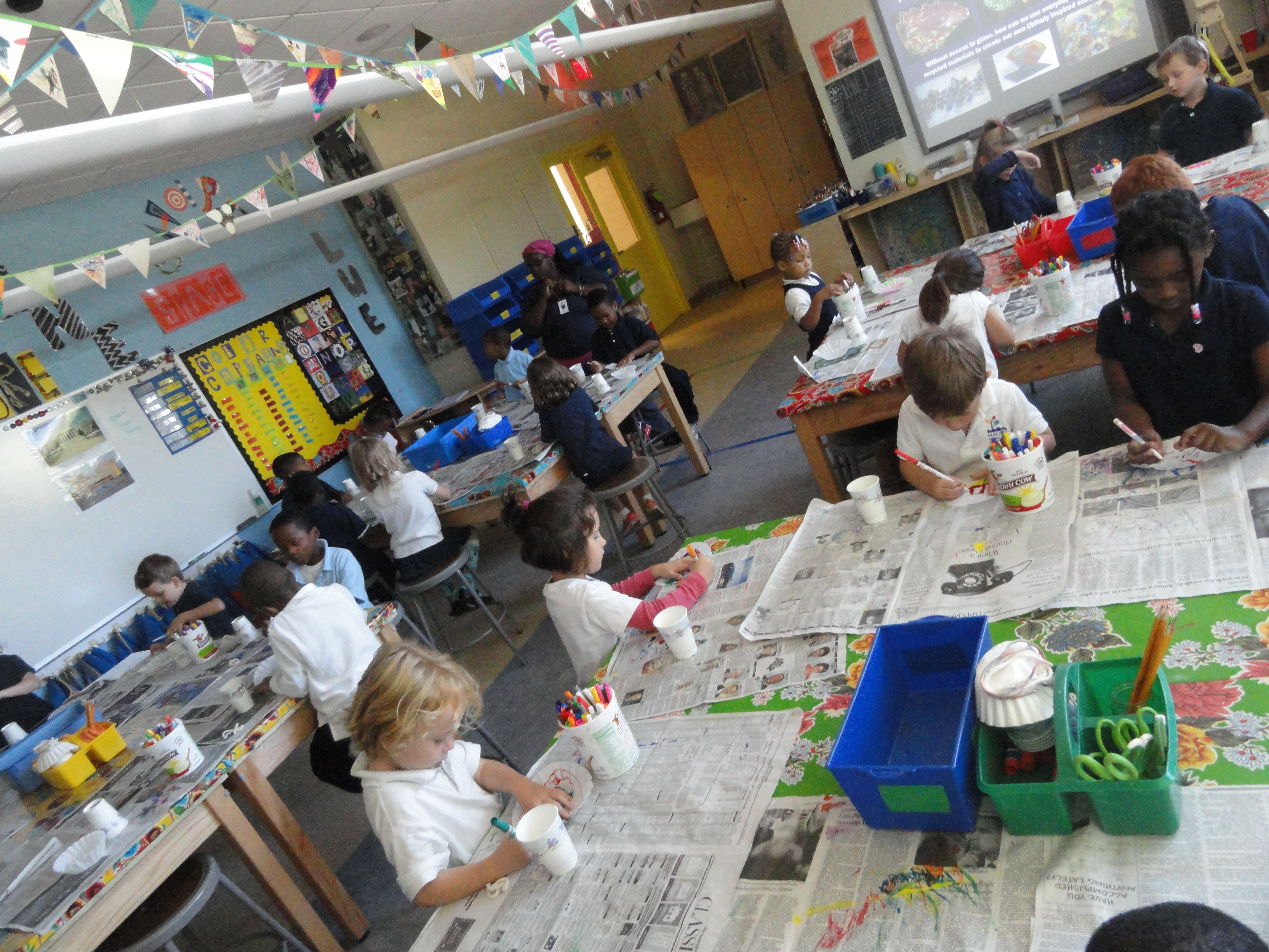 Mini Chihuly artists hard at work. These kindergartners in Mrs. Vick’s class are at the early stages of their artistic process. They begin by coming up with complicated color combinations for their macchia.