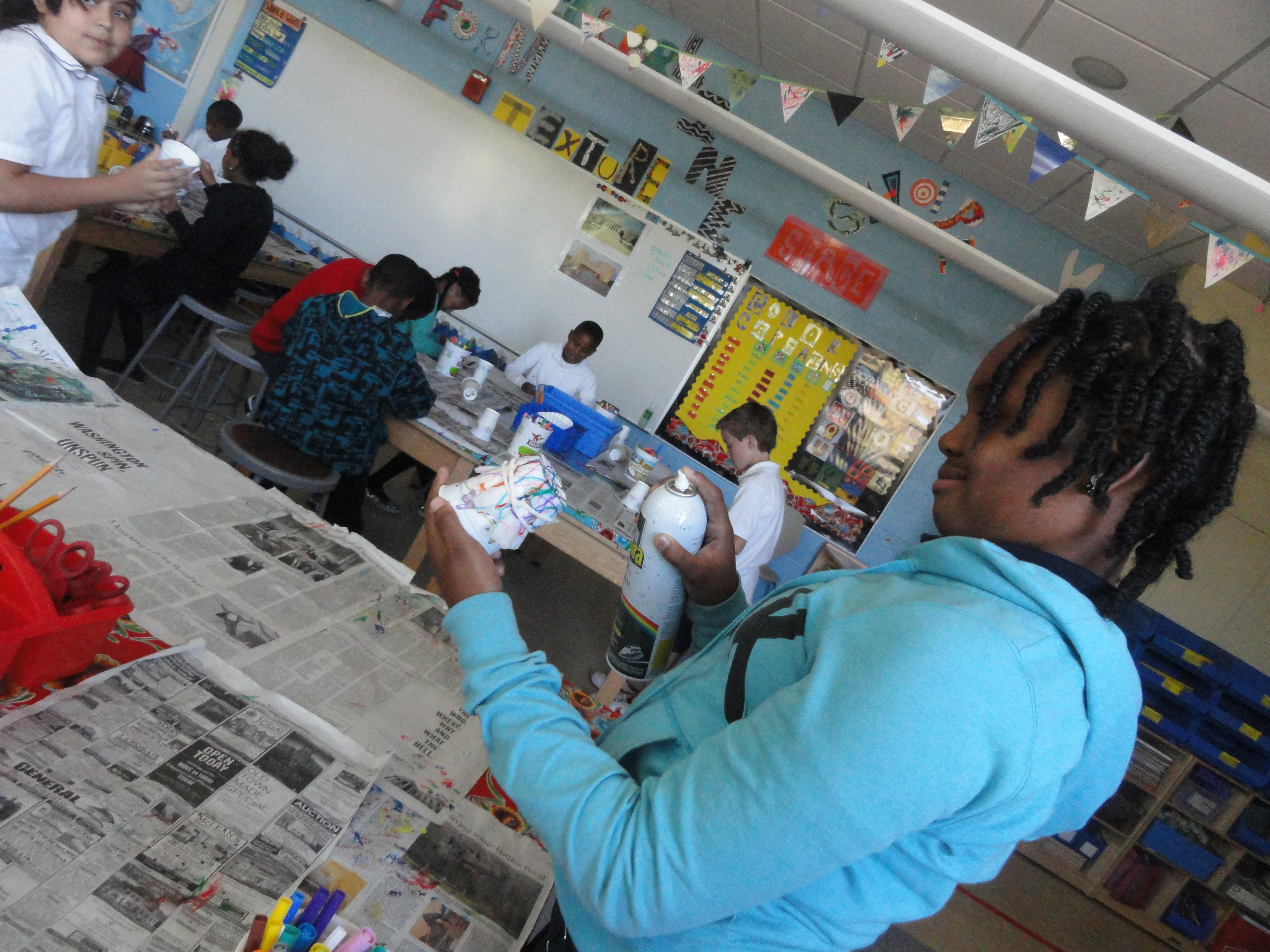 Mrs. Cooper’s first graders hard at work in the dimly lit studio.