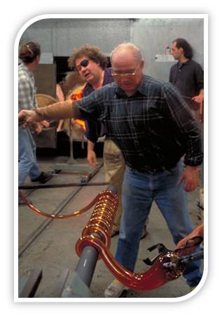 Flexing molten glass into signature Chihuly forms in preparation for a large scale glass installation