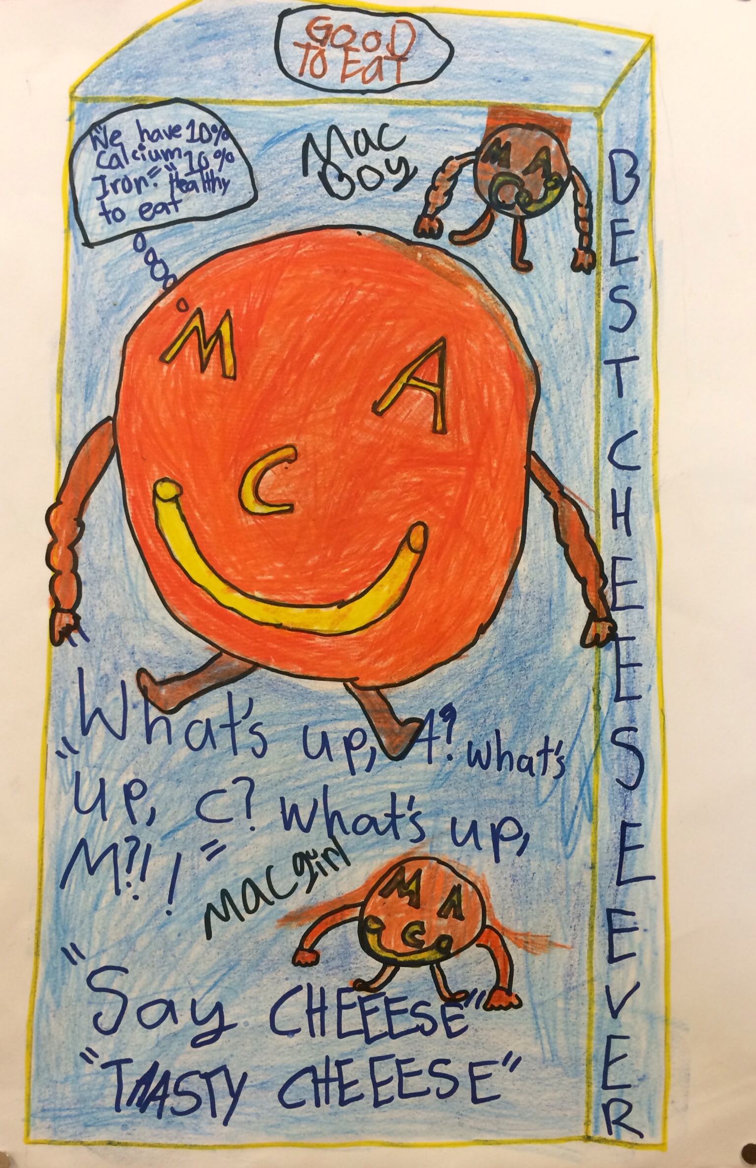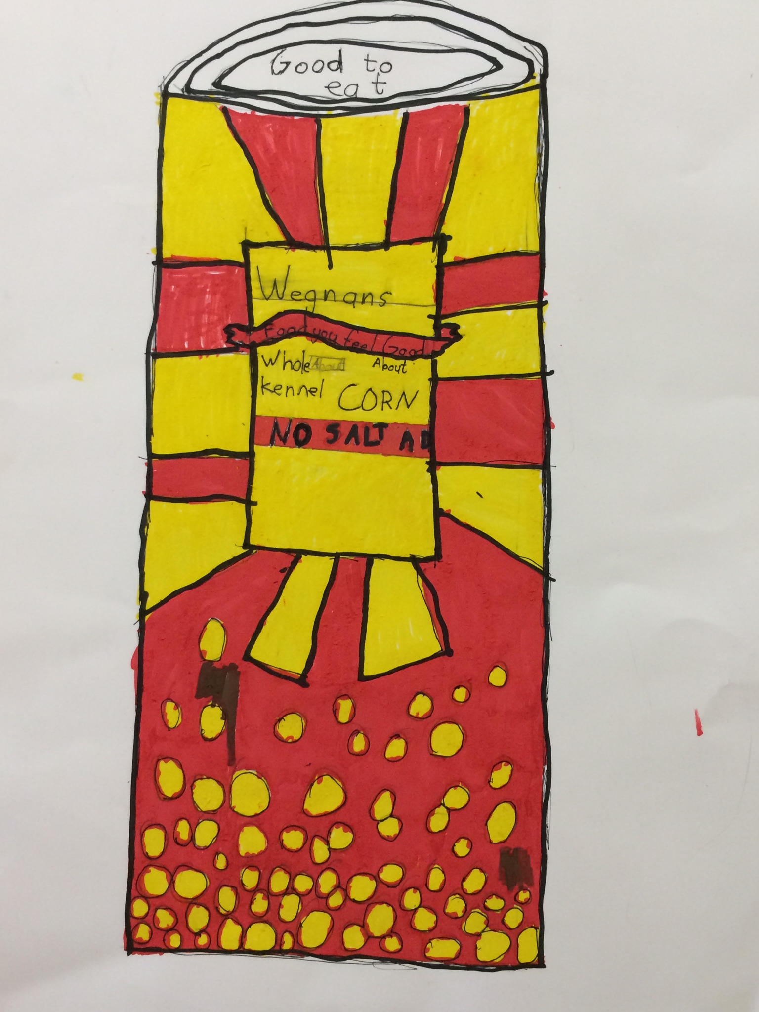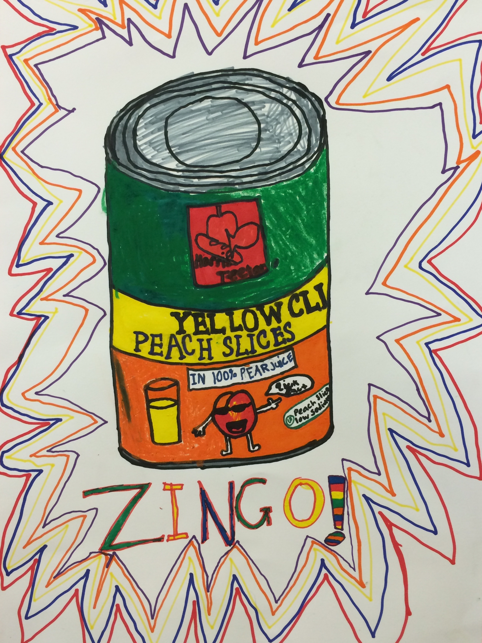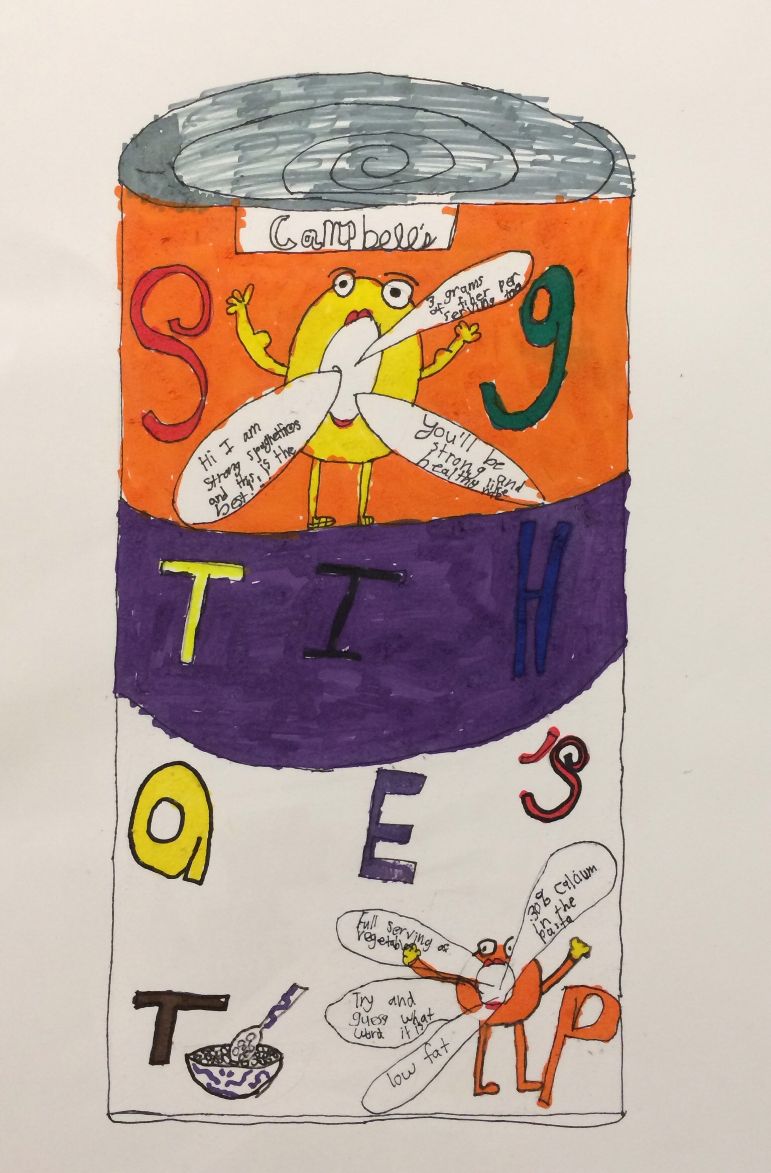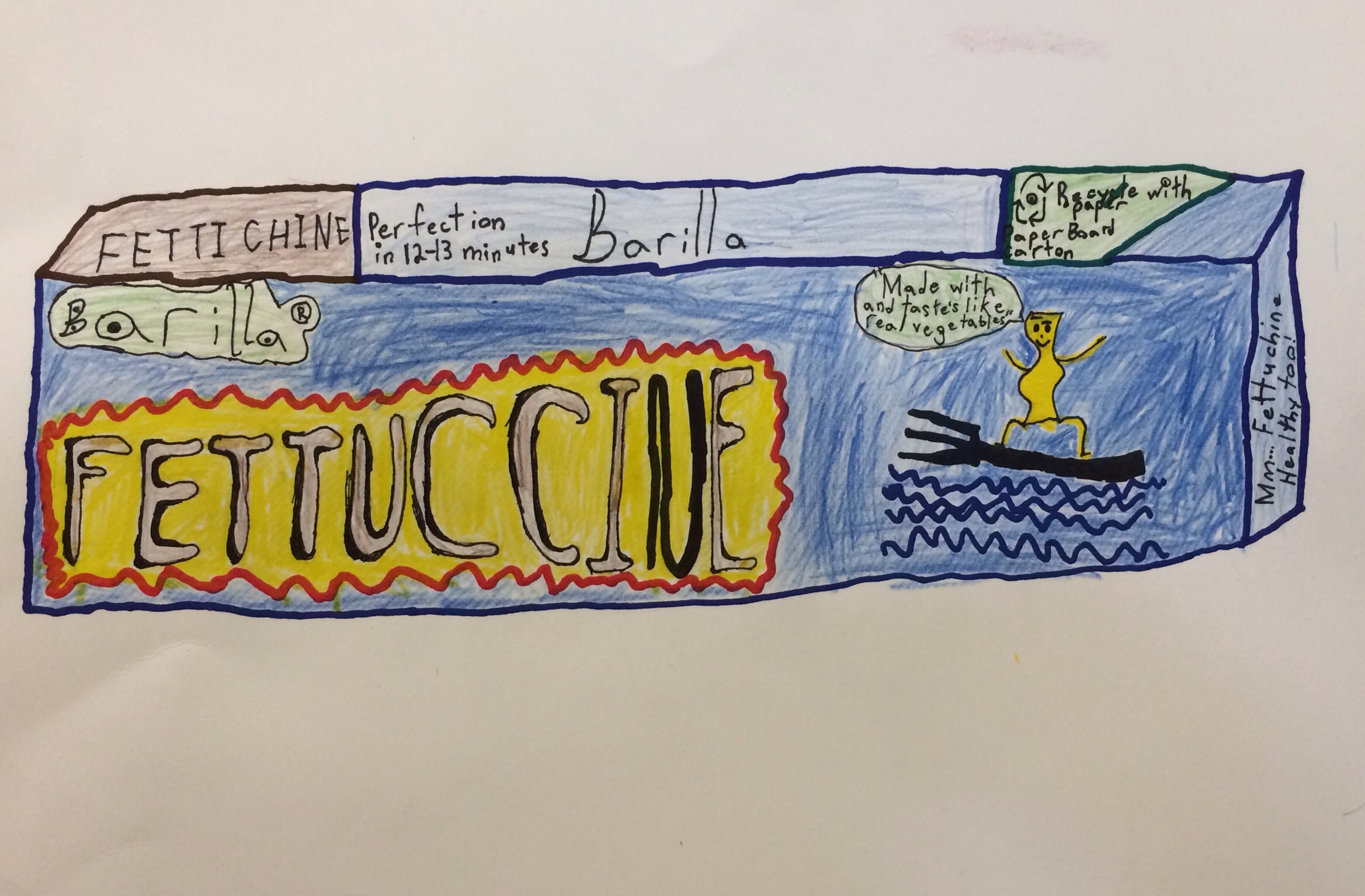 Our Food Drive Design posters are also on display now right outside the studio. I was pleased at the level of restraint and craftsmanship demonstrated by 4th and 5th grade on these. Clean lines, bold colors and a strategic use of white space helped make these posters informative and eye catching to the consumer. Not to mention, the implementation of 3D design, color theory, and nutritional information upped the ante for a series of comprehensive products.
