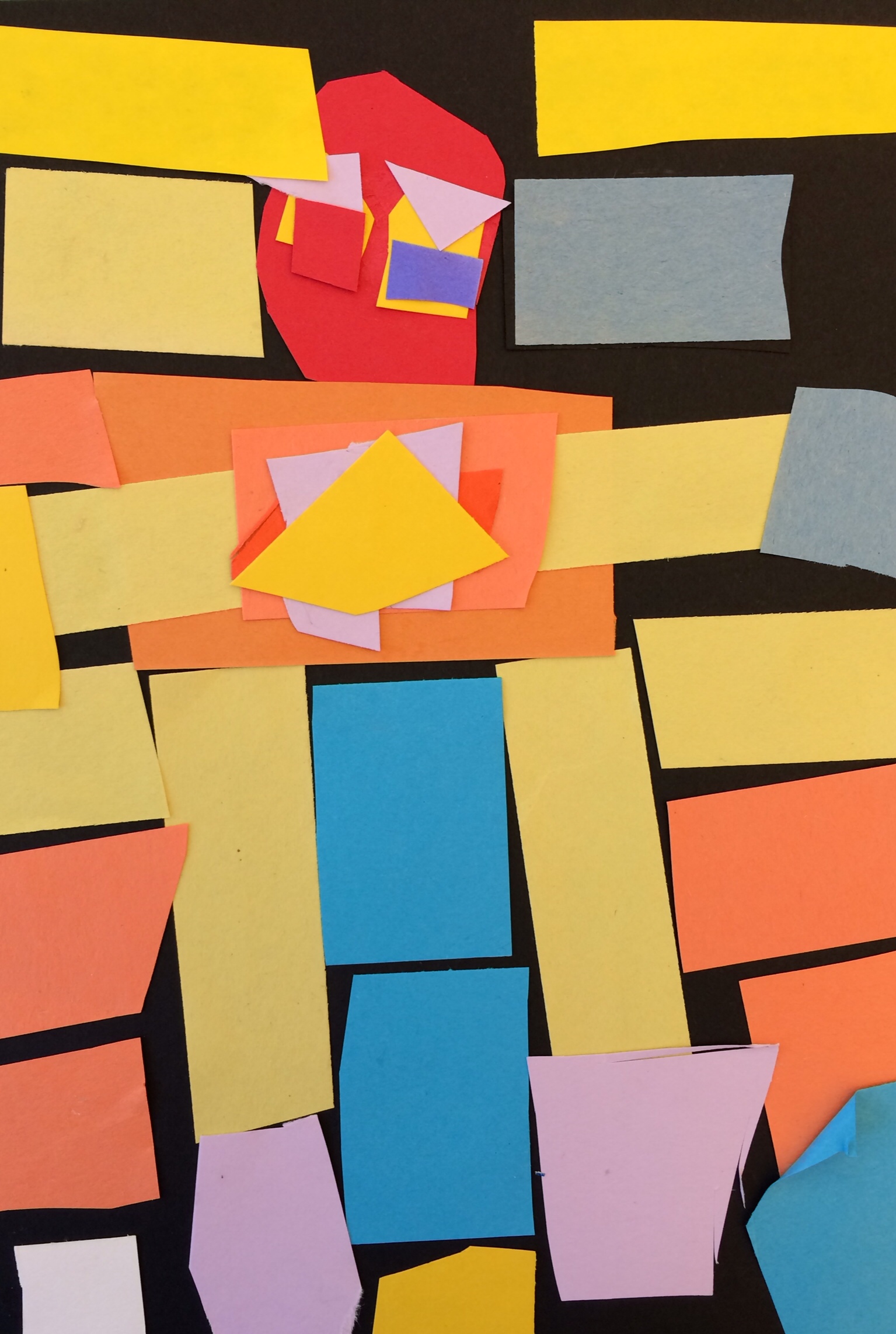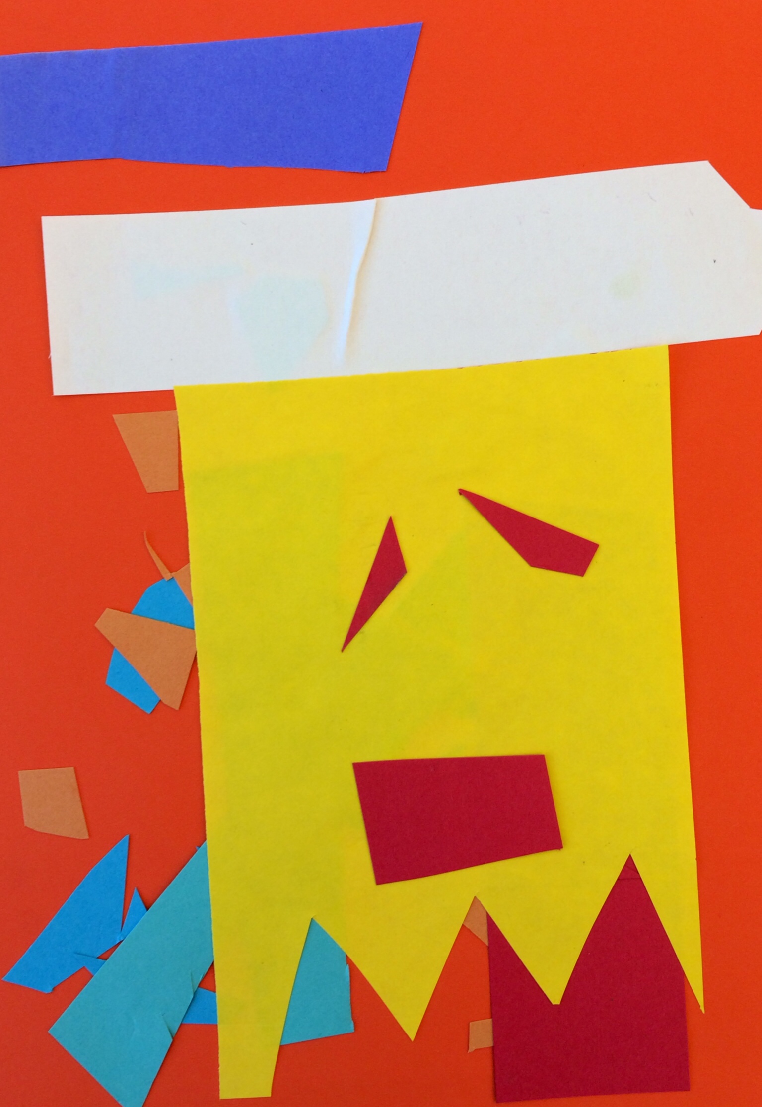 Kindergarten: Buildings with Personality (we’re still mastering the cut and paste technique needed in collage)