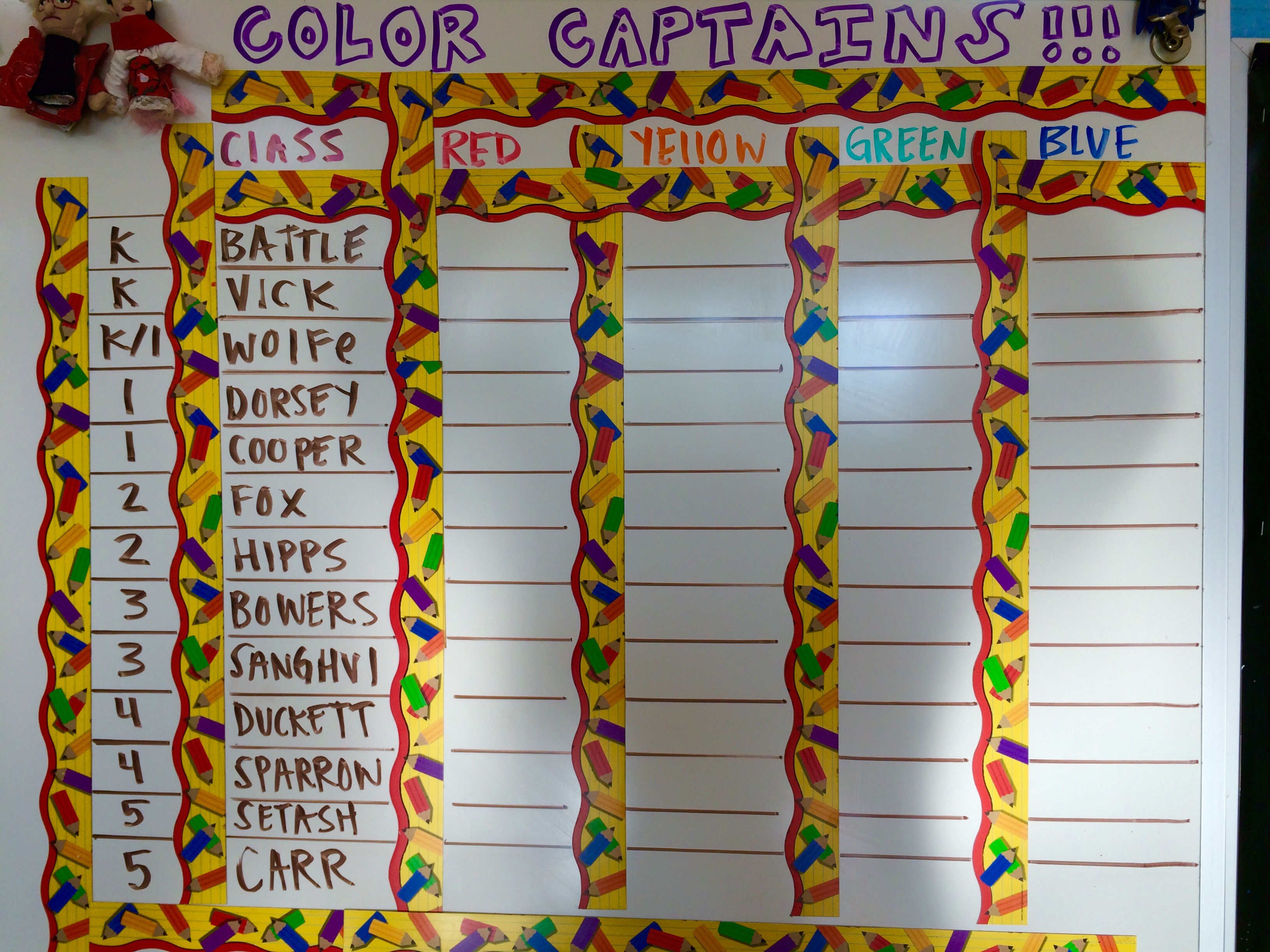 Color Captains rotate every few weeks and lead the clean up charge for their table